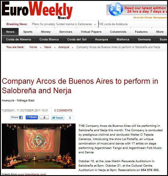 "Company Arcos de Buenos Aires to perform in Nerja and Salobreña" Noticia - Press note"