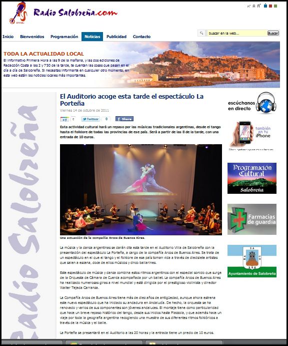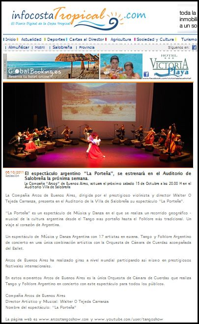 "El espectaculo argentino "La Porteña" se estrenara en el Auditorio de Salobreña la proxima semana" " Noticia - Press note"